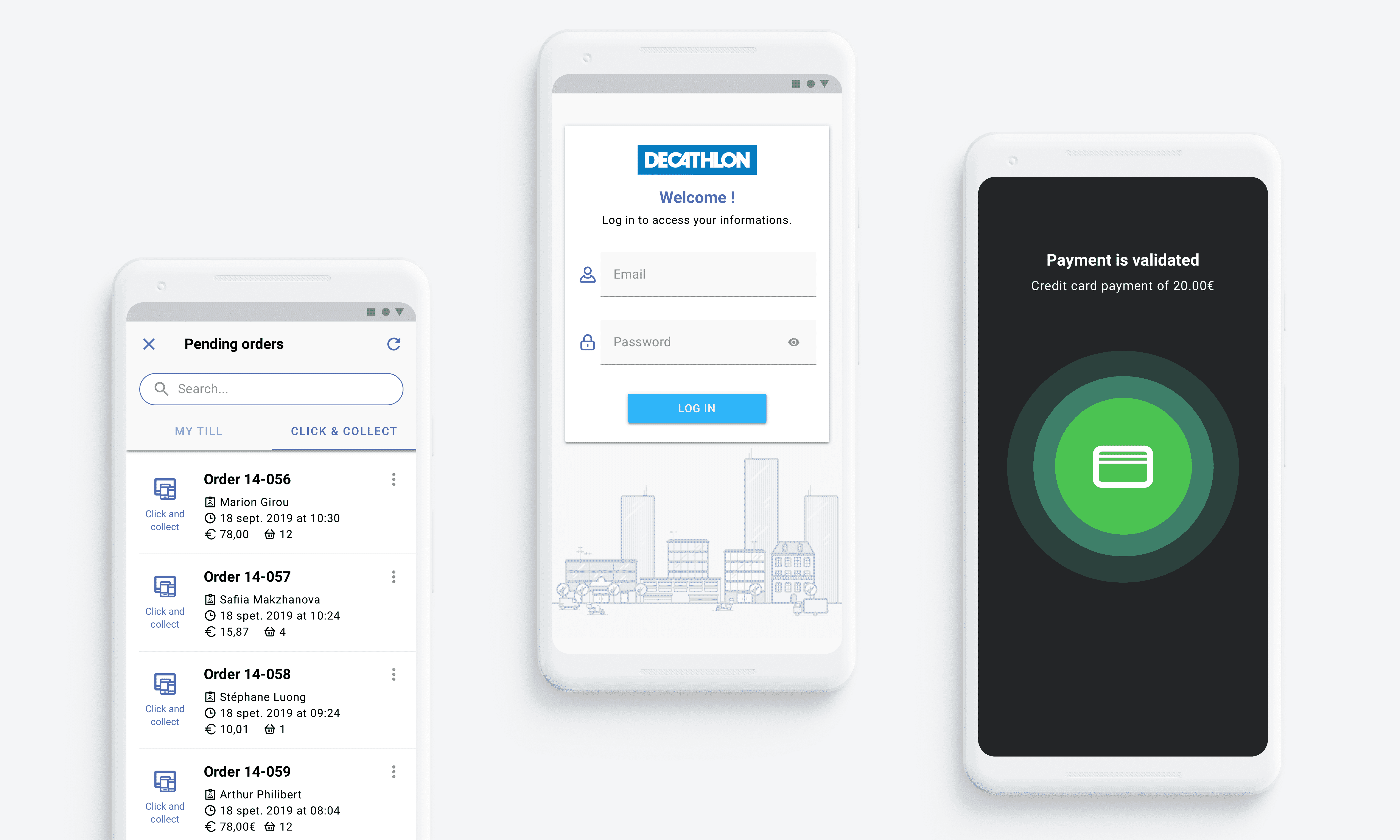 A pilot project for cashiers of Decathlon to manage click & collect orders and cash-in from their phone.