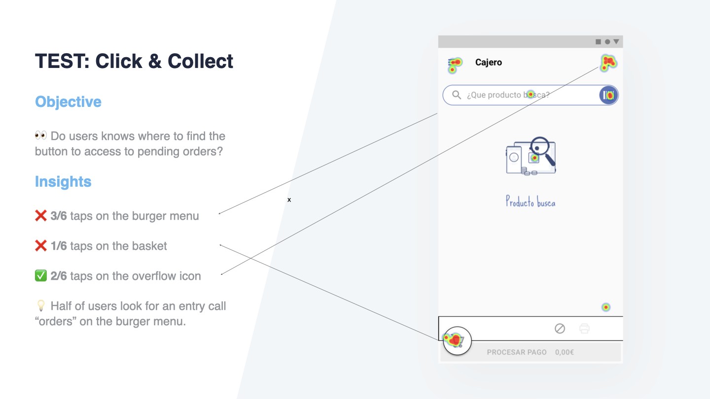 Prepare and lead user tests to collect insights on the click-and-collect experience;